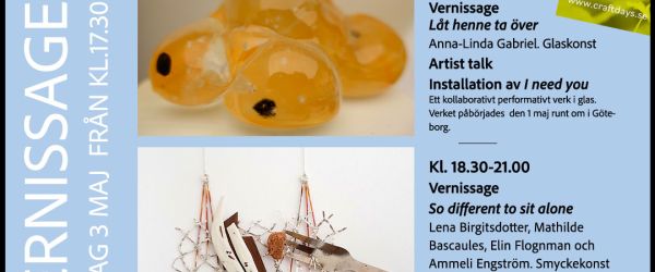 visar glaskonst "Låt henne ta över" och "I need you" på Lerverk i Göteborg