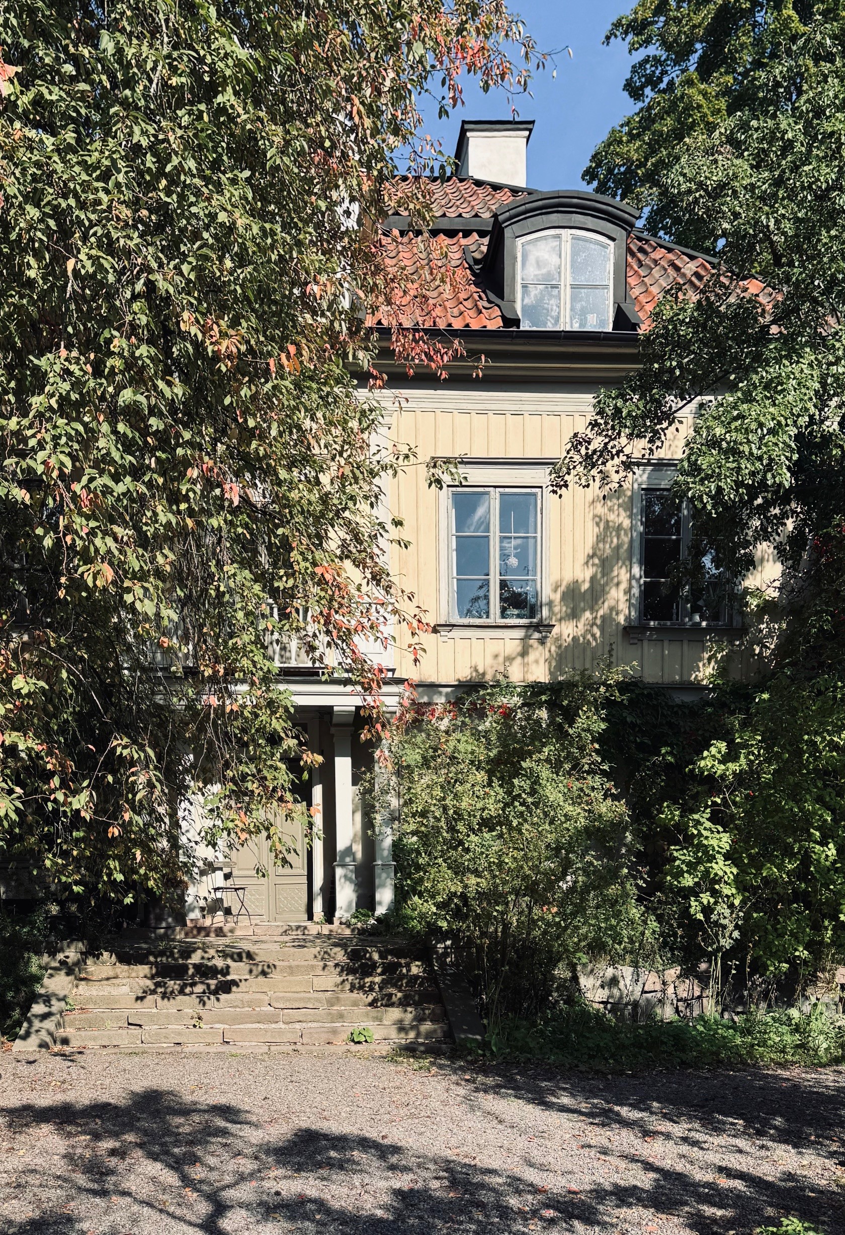 Bakom det röda planket på Vita Bergets södra sluttning på Södermalm ligger Groens Malmgård.